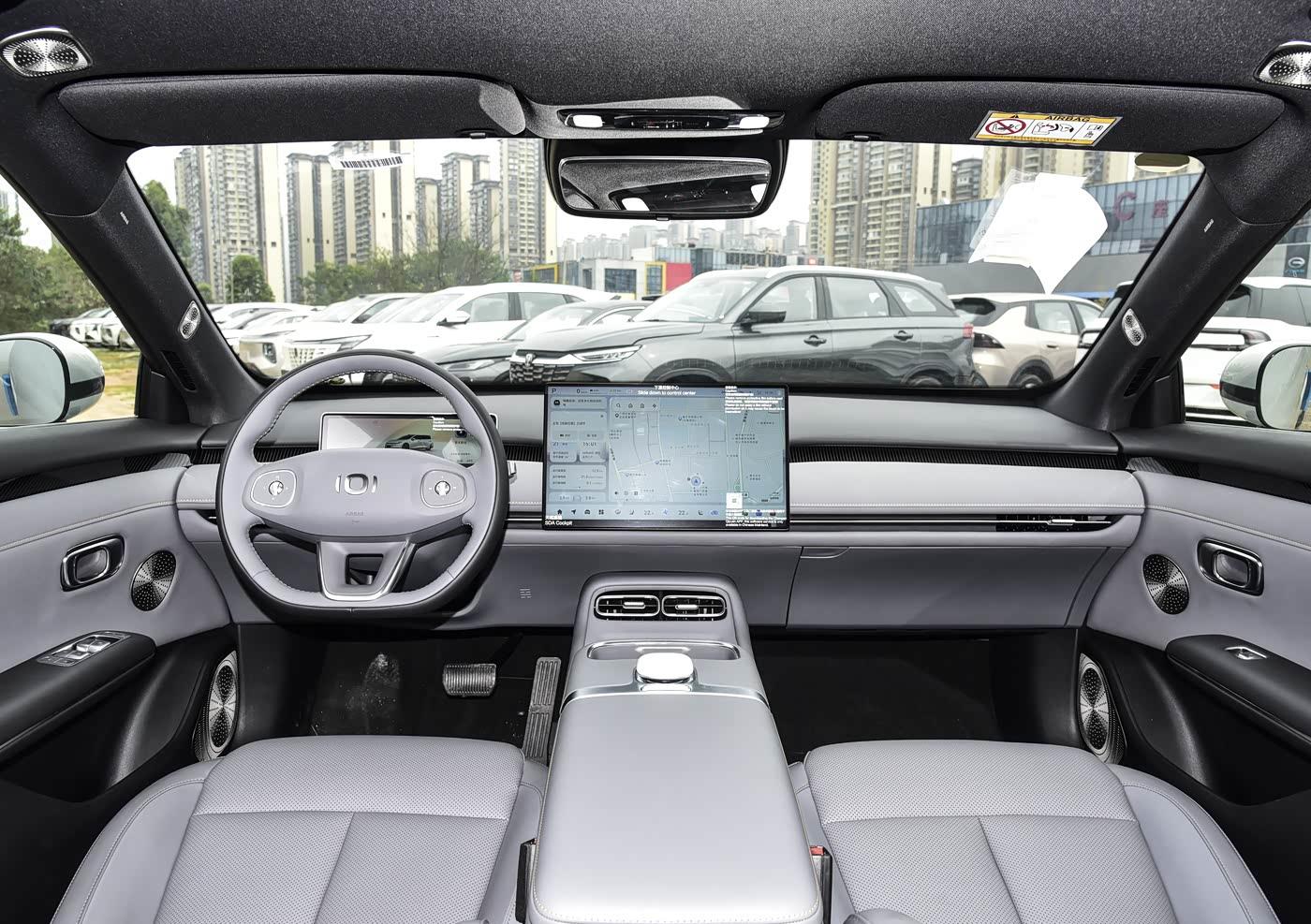 进入车内,内饰主打简约科技+舒适实用,中控台采用分层式设计,大面积软质搪塑、皮质包裹 + 缝线工艺,摆脱同价位家用车的廉价感。搭载10.25英寸全液晶仪表 + 12.8英寸悬浮式中控屏,车机搭载长安最新OS系统,界面流畅、响应快,支持高德导航、语音控制、CarPlay/HiCar、OTA 升级,操作逻辑清晰,新手易上手。空间是启源A06 核心优势,2850mm 轴距带来越级表现:180cm 身高驾驶者前排头部一拳三指,腿部空间充裕。后排腿部空间达两拳以上,头部一拳,中间地台纯平,满载3人也不局促。